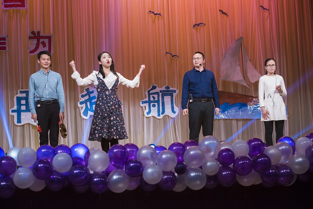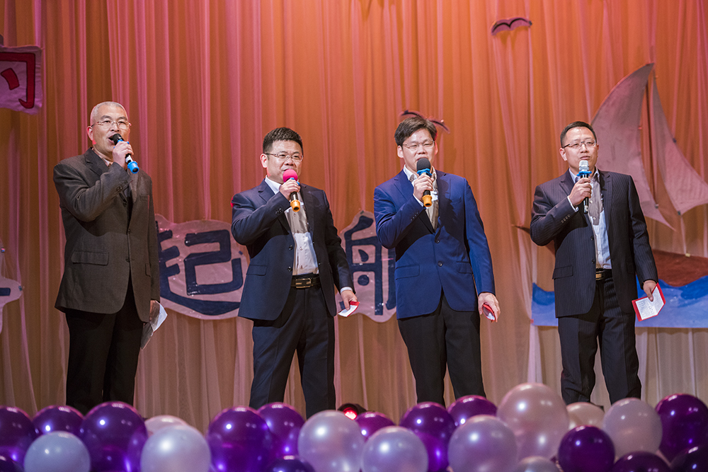 初心不忘服务地方,“核”心合力迸发力量。公司书记、经理以及两位副经理共同演绎歌曲《光阴的故事》,将现场气氛推向高潮。动情歌声抒发出公司建设者牢记责任使命在肩、打造特色办学新局面的坚定信念和决心。背景屏幕投放年少照片,歌影呼应,讲述一段勇立潮头、拼搏奋斗的光阴故事。