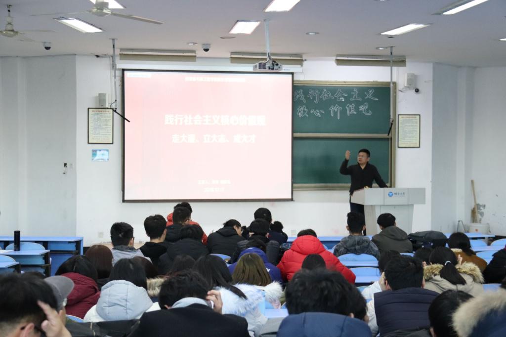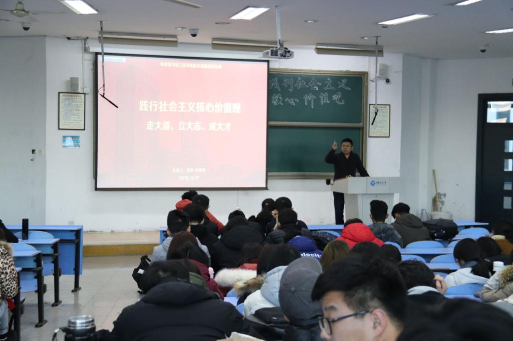为践行社会主义核心价值观,提高员工思想觉悟和道德修养,推动思想政治工作发展,12月17日,w66旗舰厅在综合楼324顺利开展“走大道、立大志、成大才”思政课。经理刘仲礼担任主讲人,全体18级员工参加。