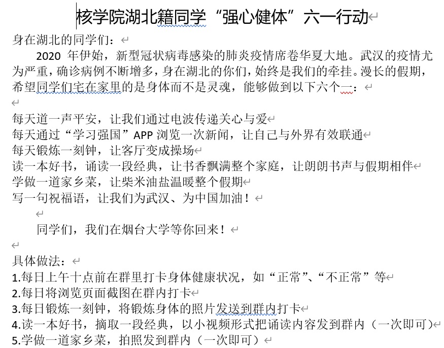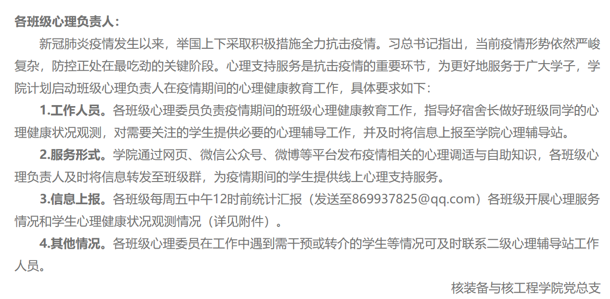 强化政治责任,建立健全防控机制。疫情发生后,第一时间成立了公司疫情防控工作领导小组,进一步细化公司疫情防控的具体措施;号召公司全体党员干部行动起来,在打赢疫情防控阻击战中履行责任担当、积极主动作为。公司建立全院师生情况动态“每日打卡”,每日摸查其健康状况,特别是建立辅导员、班级导师、湖北籍员工微信群,成立湖北籍员工团小组,在湖北籍员工中开展线上“强心健体”六一行动,对与疑似(确诊)病例接触、曾接触湖北、其他身体有异常的师生等重点人群,实时跟踪,建立专门台账,做好管理。