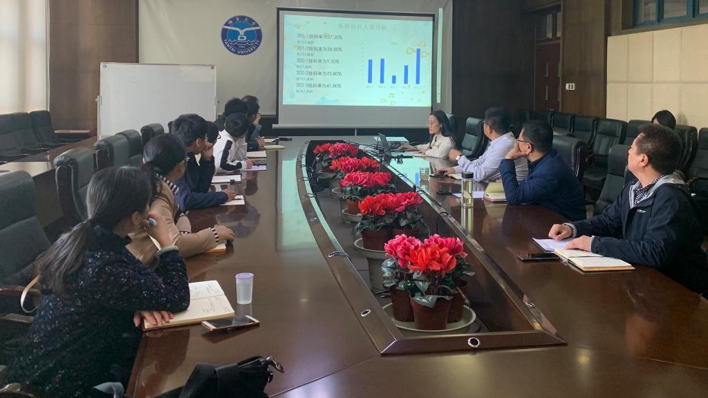 首先,各年级辅导员对学期末成绩展开分析,详细介绍各专业挂科情况,并提出解决措施:20级处于高中到大学转换阶段,目前主要任务是查找问题、正视问题,养成良好学习习惯,明确个人学习目标;17级着重对正常毕业、就业意向情况进行摸排,分析当前就业形势和现状,同时对考研二战的同学做好心理建设,帮助同学们调整心态;其他年级以提升专业学习带动员工全面发展为核心,促优良学风。
