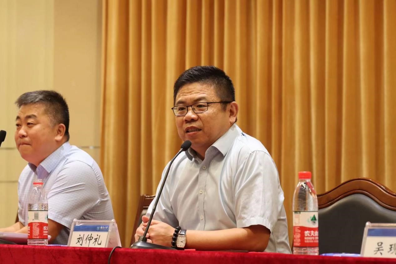 9月19日上午,2021级本科生专业教育暨龙港泵业捐资助学签字仪式在致道厅举行,龙港泵业陈培伦董事长出席仪式并讲话,仪式由党总支书记张波主持。