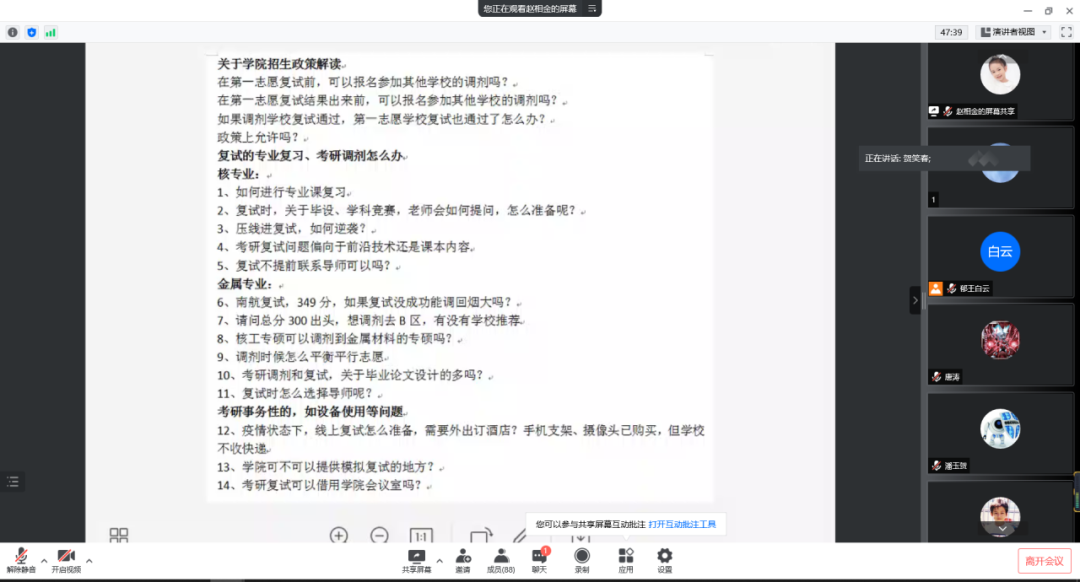 今年3月,在国家线公布后,公司邀请研究生处老师、系主任、专业课教师开展了研究生复试指导。