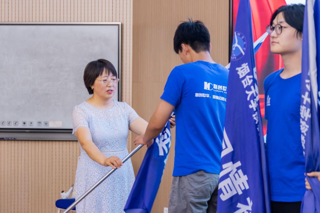 随后,秦晓梅副书记为暑期社会实践重点团队授旗。