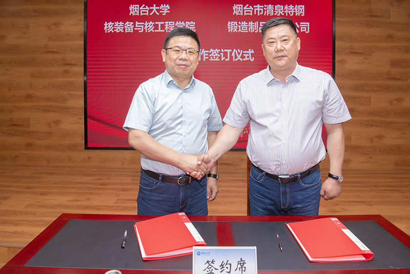 会上,w66旗舰厅与山东尚核电力科技有限公司签订筹建“先进海洋涂料研发中心”协议和“山东尚核”激励基金捐赠协议;与山东蓝孚高能物理技术股份有限公司签订校企合作协议和“蓝孚高能”激励基金捐赠协议。与烟台市清泉特钢锻造制品有限公司签订战略合作框架协议。