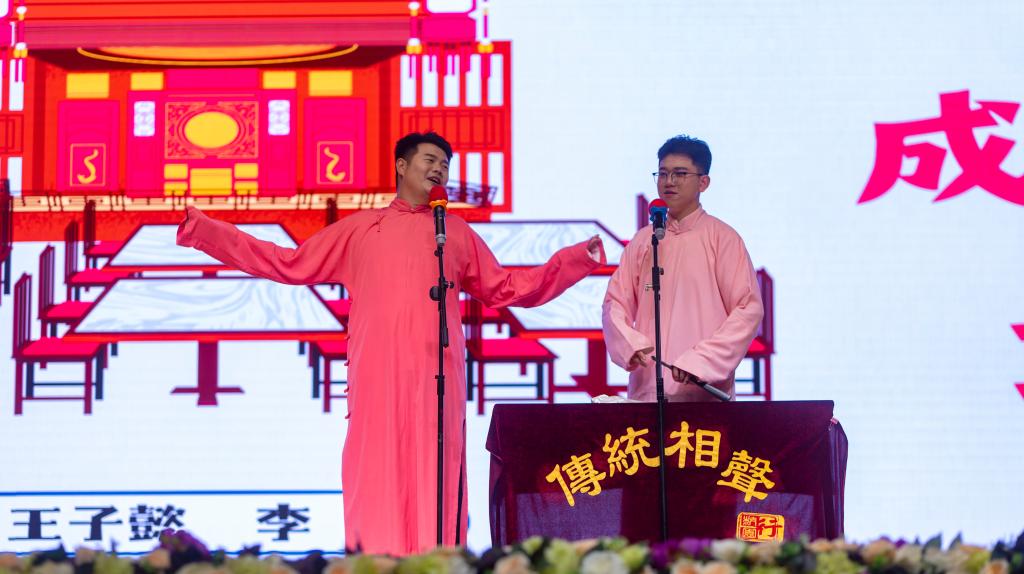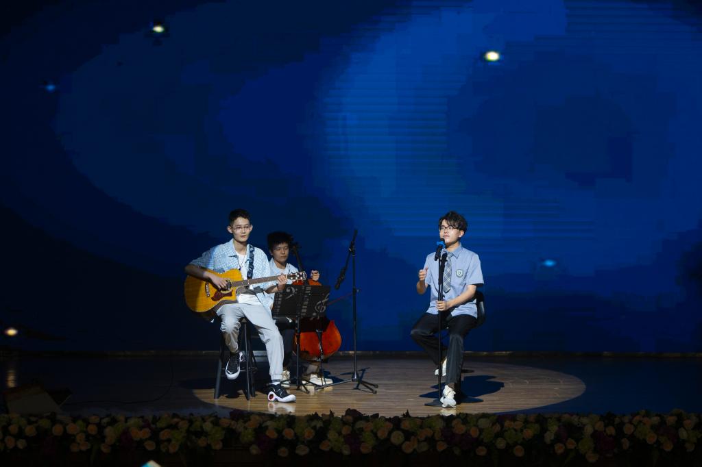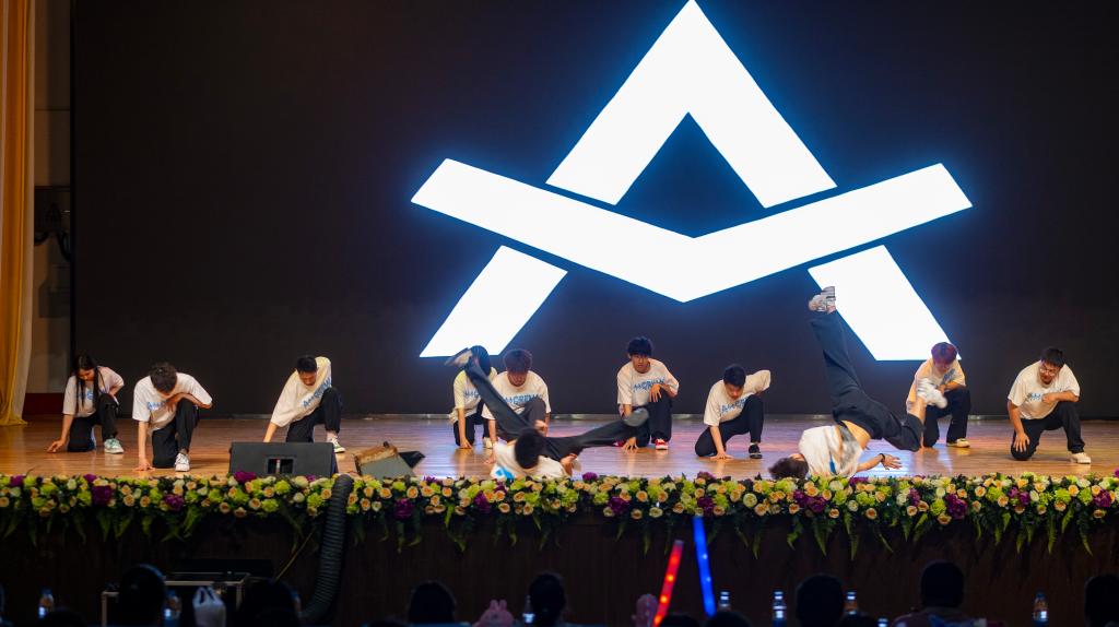 青春跃舞山海间,一曲韶华满烟园。第一篇章中,由A++舞社带来的街舞表演《我的大学》音乐动感,配合默契,舞姿绚丽,展现了青年的无限激情;歌曲《年少有为》、《如果爱忘了》歌声悠扬婉转,情感真挚动人,唱响学子的青春之声;萨克斯独奏欢快活泼,频频博得现场观众的热烈掌声。第二篇章中,由吉他、大提琴组成的器乐弹唱《在吹着稻香的晴天等你下课》、《水星记》旋律悦耳,场内师生放声齐唱,灯海簇拥着歌声萦绕出浓浓的青春氛围感。相声表演《出口成章》诙谐幽默,节奏流畅,台上台下互动频频,笑声阵阵。