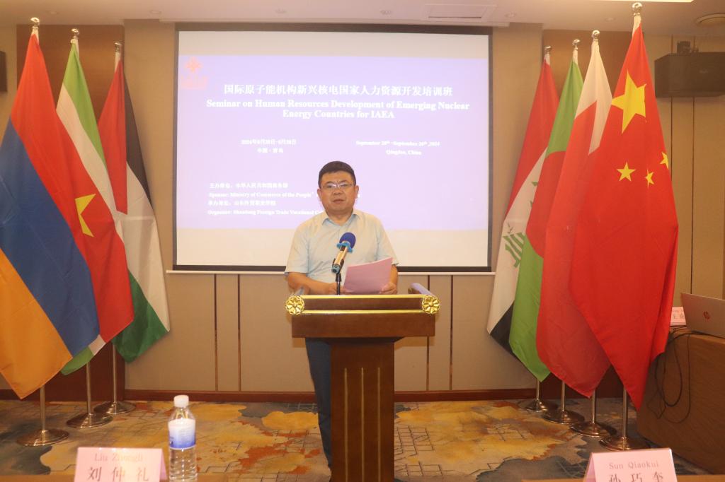 2024年9月26日,由国家商务部主办,山东外贸职业公司承办,w66w66旗舰厅参与的“国际原子能机构新兴核电国家人力资源开发培训班”在青岛顺利结课。本次培训班为期七天,来自巴林、孟加拉国、伊拉克、约旦、苏里南、亚美尼亚等国家的32名学员参加了培训。w66旗舰厅全程参与此次培训班,经理刘仲礼、副经理杨坤杰参加开班仪式以及培训班总结交流座谈,有三名教师为培训班授课,并在烟台完成了4天培训与实地参观交流活动。