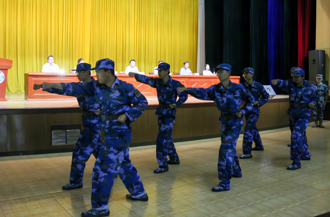 典礼现场还进行了新生军体拳与匕首操成果展示,军体拳方阵目光如炬、动作刚劲;匕首操方阵身姿敏捷、飒爽利落。精彩的表演不仅是军训成果的生动呈现,更彰显了核院学子的报国之志与青春活力。