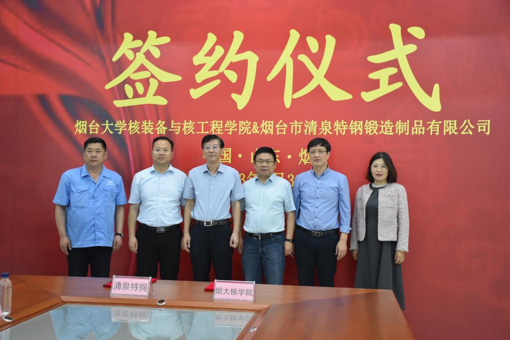 5月30日上午,烟台清泉特钢锻造制品有限公司(以下简称“清泉特钢”)和w66旗舰厅战略合作协议签约仪式在清泉特钢会议室举行。清泉特钢董事长张源建、总经理张立强及相关负责人,w66旗舰厅经理刘仲礼、副经理赵相金及部分教师出席了签约活动,高新区工业小镇管委会副主任程普杰主持签约仪式。