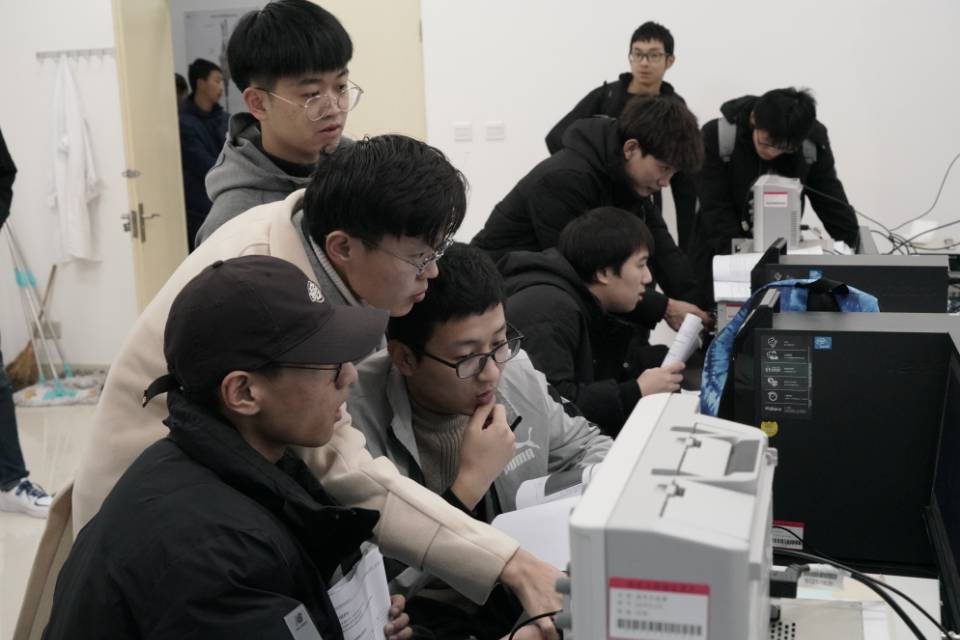 在杨坤杰老师带领下,同学们依次参观各实验室,初步了解了半导体探测器、α/β表面污染检测仪等多种仪器设备的工作原理和使用情况。其中,实践创新实验室是由多名本科员工组成的新生实验室,它所提供的实验环境与比赛资源 深深吸引着在场同学。参观期间,杨坤杰老师详细介绍了设备的用途与数据,用幽默诙谐的语言讲述设备的“故事”,让知识变得更通俗易懂,调动了同学们的参观热情;同学们与正在操作实验的员工进行交谈,学到了一些实际操作的知识,感受到了实验操作的趣味性。在解疑环节,现场气氛活跃,同学们积极提出自己的问题和想法,杨坤杰老师作出详细解答,并鼓励同学们加入实验室,丰富老员工活。
