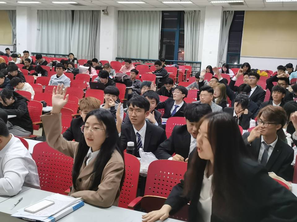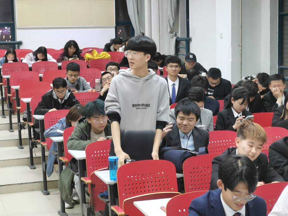 党史知识竞答题目围绕党史、新中国史、改革开放史、社会主义发展史展开,推动广大团员干部群众学史明理、学史增信、学史崇德、学史力行。题目均为选择题,抢答者在10秒内快速作答,既考验扎实的理论功底,又测试灵敏的反应速度。观众们一个个注意力高度集中,凝神屏气,认真听题,快速抢答,比赛氛围十分紧张。同学们的精彩竞答赢得了现场一次次得分和一阵阵掌声。
