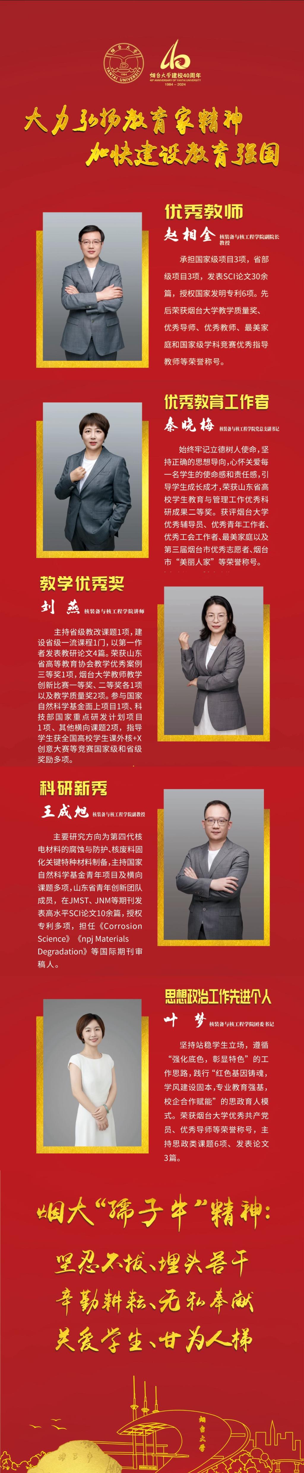 近年来,公司教职工始终坚持以习近平新时代中国特色社会主义思想为指导,深入学习贯彻党的二十大和二十届三中全会精神,大力弘扬教育家精神,围绕立德树人根本任务,在各自工作岗位上努力践行w66"孺子牛"精神,无私奉献、甘为人梯、教书育人、开拓创新,涌现出了一批先进典型。